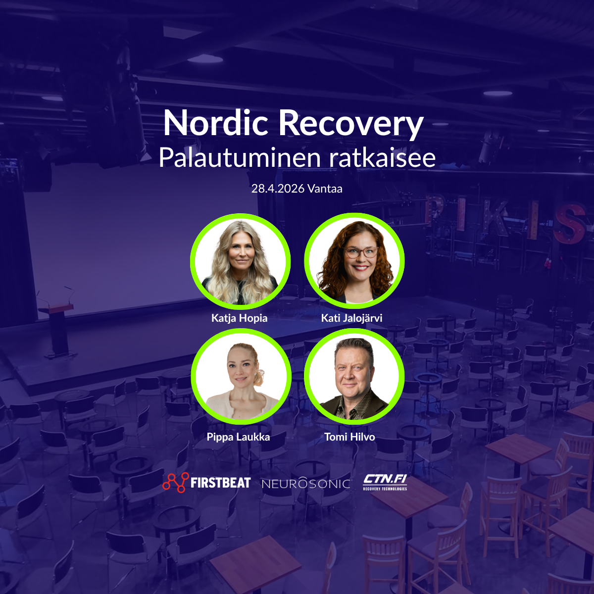 Tervetuloa kokonaisvaltaisen palautumisen ja työhyvinvoinnin tapahtumaan, jossa kuulet puheenvuorot energisemmän ja kestävämmän työkyvyn rakentamiseen ja pääset kokeilemaan suomalaisten huippubrändien tarjoamia ratkaisuja parempaan palautumiseen.